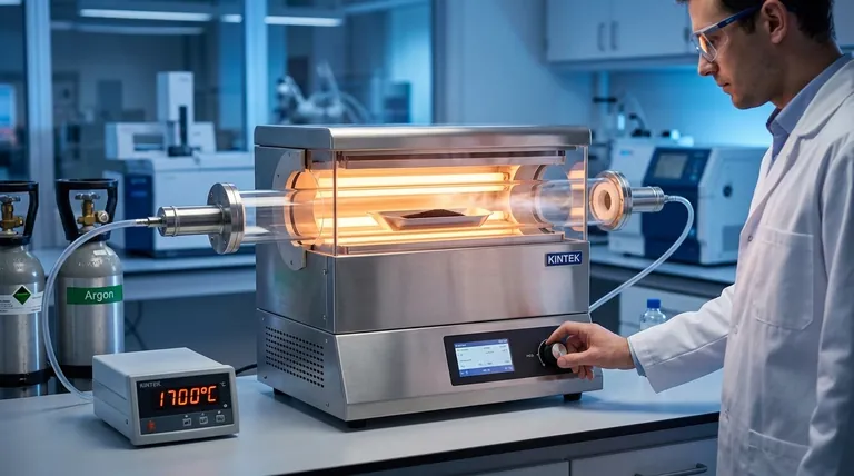 Stellen Sie sich die Synthese eines neuartigen 2D-Materials wie Graphen vor. Ein einziges verirrte Sauerstoffatom kann einen Defekt einführen, der sein perfektes hexagonales Gitter ruiniert und die Probe unbrauchbar macht. In einem Rohrofen können Sie die Kammer mit Argon fluten und so eine inerte Schutzschicht schaffen, die Ihre Kreation schützt. Es verwandelt den Prozess von einem Glücksspiel in ein wiederholbares Verfahren.
