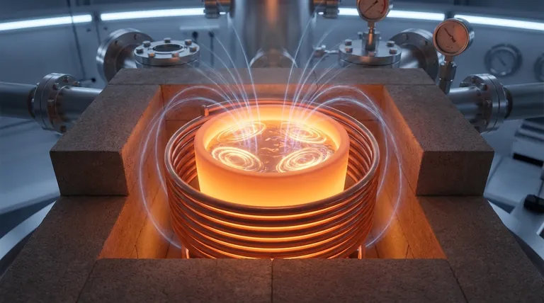 Dieses Magnetfeld durchdringt den Keramiktiegel und induziert direkt im geschmolzenen Magnesium kreisförmige elektrische Ströme, die als Wirbelströme bekannt sind. Der inhärente elektrische Widerstand des Magnesiums bewirkt, dass dieser Stromfluss intensive Wärme erzeugt, die das Material von innen heraus schmilzt und verdampft.