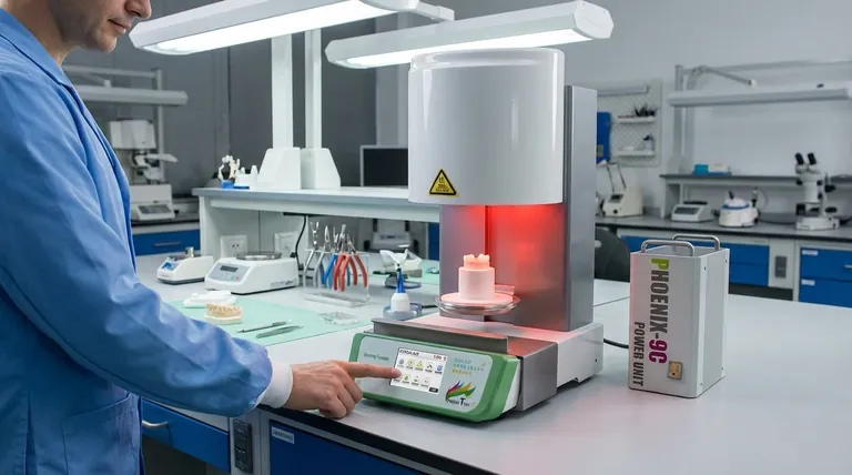 Anschließend wählt der Techniker das richtige Programm auf dem computergesteuerten Bedienfeld des Ofens aus. Dieses Programm ist spezifisch für das verwendete Material, da verschiedene Arten von Zirkonoxid oder anderen Keramiken einzigartige Aufheiztemperaturen, Aufheizraten und Haltezeiten erfordern.