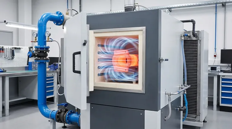 Im Grunde wird die Kühlung in einem Vakuumofen erreicht, indem das Vakuum gebrochen und ein hochreines Inertgas, wie Argon oder Stickstoff, eingeführt wird. Dieses Gas wird dann unter Druck gesetzt und durch einen leistungsstarken Ventilator schnell zirkuliert, wodurch Wärme vom heißen Material auf einen internen Wärmetauscher übertragen wird, der die thermische Energie aus dem System ableitet.