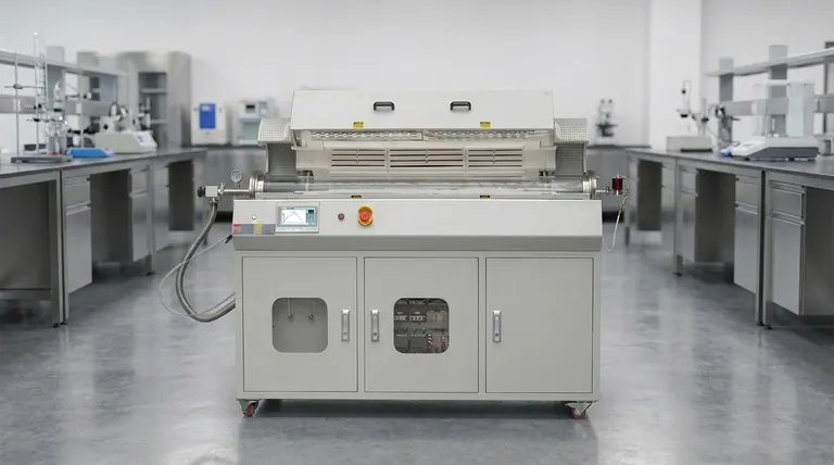 Das definierende Merkmal dieses Ofens ist sein rotierendes Prozessrohr. Diese einfache mechanische Aktion verändert die Umgebung für die CVD an Partikelmaterialien im Vergleich zu einem herkömmlichen, stationären Ofen grundlegend.