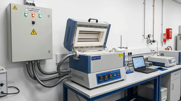 Eine 415V Drehstromversorgung ist der Standard für Hochleistungsöfen. Dies ist eine Notwendigkeit für Geräte mit hohen Maximaltemperaturen (1500 °C bis 1800 °C) oder großen Heizzonen (600 mm oder mehr).