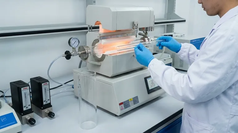 Das Quarzrohr in einem Chemical Vapor Deposition (CVD)-System ist mehr als nur ein einfacher Behälter. Es ist die Reaktionskammer, in der alle kritischen Prozesse – Erhitzen, Gasfluss und chemische Reaktion – stattfinden.
