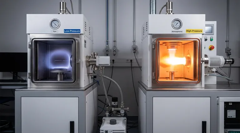 Die Wahl des richtigen MPCVD-Systems – ob Niederdruck oder Hochdruck – ist entscheidend für das Erreichen Ihrer spezifischen Materialsyntheseziele. Das Druckregime bestimmt den grundlegenden Zustand des Plasmas, der die Reaktionswege und die endgültigen Materialeigenschaften direkt steuert.