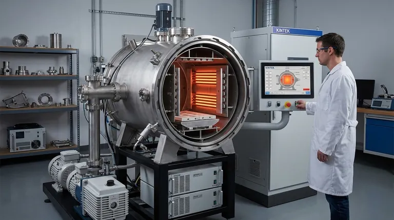 Ein Vakuumofen baut auf einigen Schlüsselkomponenten auf. Der Hauptkörper oder die Hülle wird typischerweise aus Stahl geschweißt und oft wassergekühlt, um seine strukturelle Integrität bei extremer Hitze aufrechtzuerhalten. Im Inneren dieser Hülle befindet sich ein Arbeitsbereich, in dem das Material platziert wird.