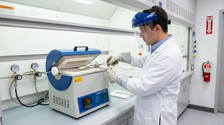 Aufgrund extrem hoher Betriebstemperaturen, die oft bis zu 1200 °C erreichen, ist die richtige PSA nicht verhandelbar. Tragen Sie immer hitzebeständige Handschuhe, wenn Sie Proben handhaben oder die Ofenkammer zugänglich machen, und eine Schutzbrille oder einen Gesichtsschutz zum Schutz vor Wärmestrahlung und potenziellen Geschossen.
