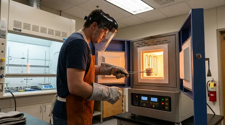 Für das Be- und Entladen eines Tischofens umfasst die minimal empfohlene Persönliche Schutzausrüstung (PSA) hochtemperaturbeständige Handschuhe und eine nach ANSI zertifizierte Schutzbrille oder Korbbrille. Abhängig von der spezifischen Temperatur und den beteiligten Materialien sollte dies durch einen Gesichtsschutz und flammhemmende Kleidung ergänzt werden, um umfassenden Schutz vor intensiver Hitze, Funkenflug und möglichem Schmutz zu bieten.