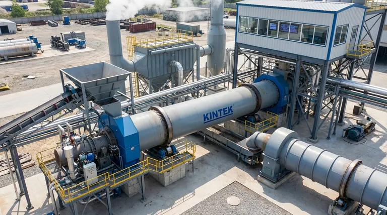 Im Kern geht ein komplettes Drehrohrofen-System weit über die rotierende Trommel selbst hinaus. Die notwendige unterstützende Ausrüstung umfasst integrierte Systeme für die Materialhandhabung (Zuführung und Entladung), die Wärmeerzeugung (Brenner), die Prozesssteuerung (Automatisierung) und die Einhaltung von Umweltvorschriften (Abgasbehandlung), die alle zusammenwirken, um ein spezifisches thermisches Verarbeitungsziel zu erreichen.