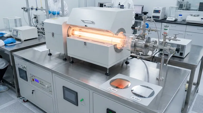 Optimieren Sie Ihre elektronischen Anwendungen mit den fortschrittlichen Hochtemperatur-Ofenlösungen von KINTEK! Mit unserer außergewöhnlichen F&E und hauseigenen Fertigung bieten wir verschiedenen Laboren Produkte wie Muffel-, Rohr-, Drehrohröfen, Vakuum- und Atmosphäreöfen sowie CVD/PECVD-Systeme. Unsere starke Fähigkeit zur tiefgreifenden Anpassung stellt sicher, dass wir Ihre einzigartigen experimentellen Anforderungen für die Entwicklung zuverlässiger Kupfer- oder Aluminiumfilme präzise erfüllen. Kontaktieren Sie uns noch heute, um die IC-Leistung und Effizienz zu steigern!
